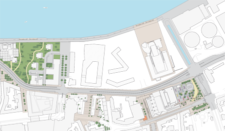 Udsnit af helhedsplanen for Aalborg Havnefront der blandt andet illustrerer det kommende Musikkens Hus.