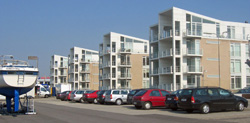 Den nye by ved fjorden Vest for den bevaringsværdige klassicistiske Royal-bygning ligger den nye boligbebyggelse ved Mellem Broerne - længehuse placeret vinkelret på havnefronten - moderne i udformning og maritimt inspirerede med deres lyse facader, flade tage og store glasinddækkede altaner mod havnefronten. Fælles for mange af bebyggelserne er altaner, som flere steder er trukket ind i facaderne med flotte dybdevirkninger med lys og skygge i facaderne til følge.