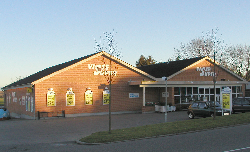 I forbindelse med købmanden findes en sammenhængende mindre erhvervsstruktur med større volumener.