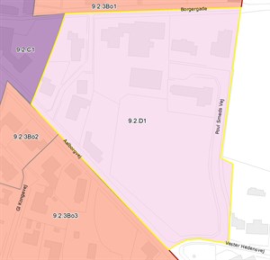 Kommuneplanrammen 9.2.D1 ligger i den sydøstlige del af Gandrup. Området er et kombineret bolig- og erhvervsområde, der rummer boliger, mindre erhverv og et større ubebygget areal, hvorpå der påtænkes opført en døgninstituion for ældre og demente (plejehjem).