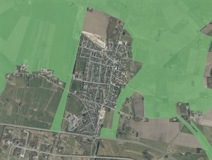 Eksisterende skovrejsningsområde vist med grøn streg. |