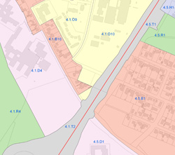 - At grænsen mellem 4.1.B10 og 4.1.O10 flyttes så matr.nr. 14y Nr. Tranders, Aalborg Jorder i sin helhed ligger i 4.1.O10.